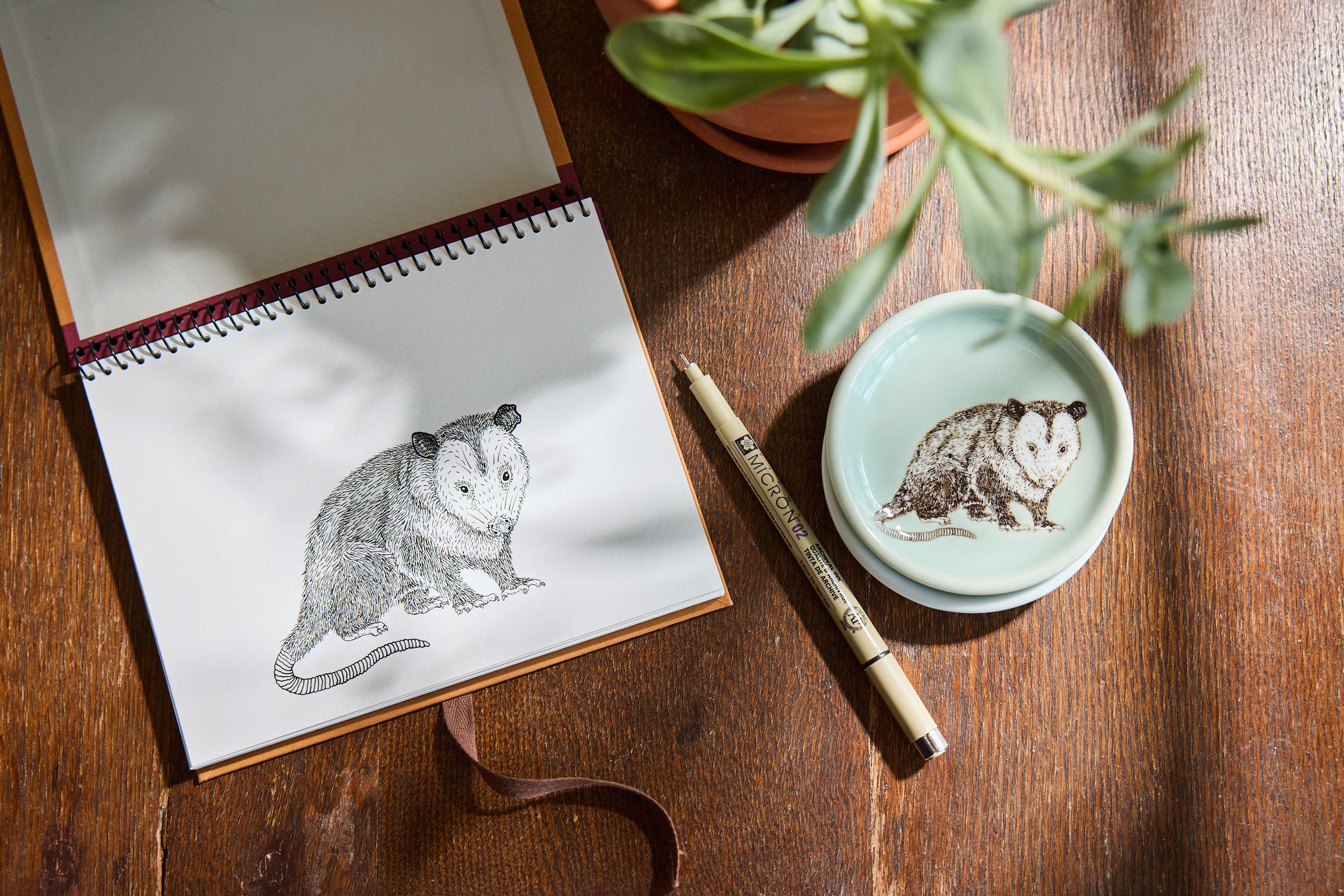 Each illustration is hand drawn by SKT owner Susannah Tisue. Every illustration is then screen printed onto our ceramics and textiles. There are 110 drawings and counting!